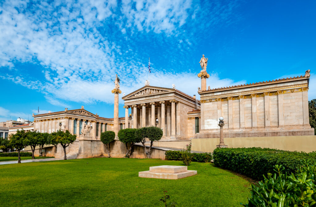 The Stunning Neoclassical trilogy (Panepistimiou street). This wonderful 3-building complex encompasses the University of Athens, the Academy, and the National Library. Metro Station: Panepistimio.