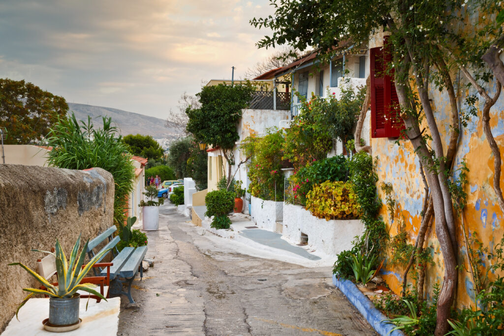 Hugging the base of the Acropolis, Plaka is the one of the most ancient settlements in Europe with a history going back more than 3500 years. Plaka is also the most picturesque quarter in the heart of Athens, with narrow streets and picturesque buildings draped in Bougainvillea and other flowers.  Most of the streets in Plaka are closed to traffic, and thus the best way to explore is to simply wander its lanes on foot, chasing glimpses of the Acropolis between the neoclassical buildings, Byzantine churches, cafes, restaurants, and souvenir shops.